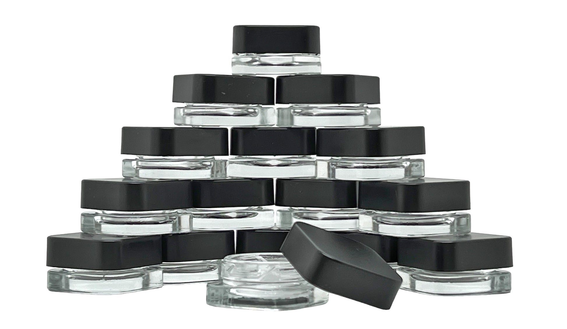 These 9ml square glass concentrate jars are available in clear or black glass with 16, 64, and 320 count options for small runs or large-scale concentrate packaging.